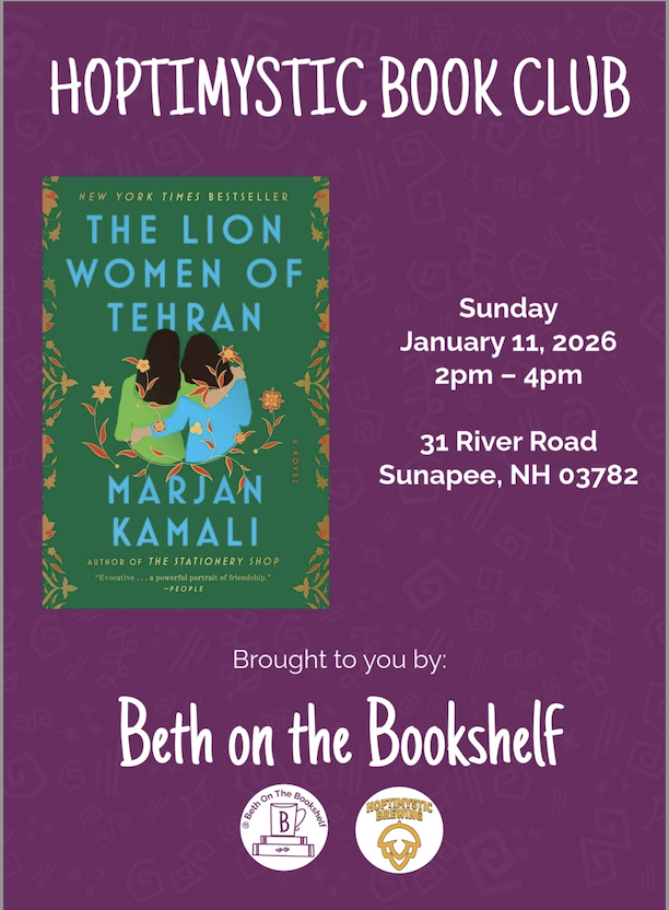 Beth on the Bookshelf will be at Hoptimystic Brewing- Sunapee to host Hoptimystic Book Club. The pick for this meeting is The Lion Women of Tehran by Marjan Kamali. Come in a meet new people and discuss the book! |