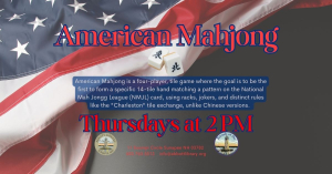 Join library volunteers and patrons as they play Taiwanese Mah Jongg! Supplies provided.